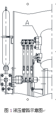 圖1所示為液壓缸與蓄能器間的連接管路,為實現(xiàn)蓄能器對液壓缸快速補壓緩沖作用,A處設(shè)計較大直徑管道接口,圖1中A處的原密封形式詳見圖2。圖2中的分油管一端連接高壓膠管,另一端焊接法蘭1,法蘭1與液壓缸法蘭采用螺栓連接,兩法蘭是采用一道端面O型圈(圖2中密封處1)實現(xiàn)密封。