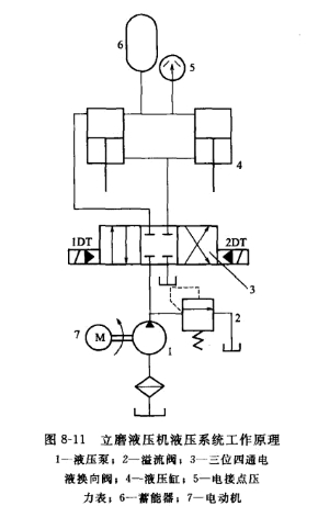 2、立磨液壓機(jī)液壓系統(tǒng)的組成和工作原理: