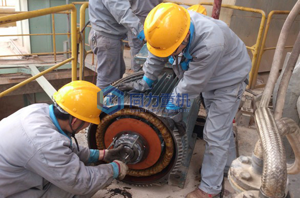 嚴(yán)格按采礦場(chǎng)立磨安裝標(biāo)準(zhǔn)進(jìn)行安裝。特別是在齒輪反面安裝后更要注意測(cè)量大齒圈的徑向和端面跳動(dòng)量、大齒圈與筒體的同軸度、大齒圈的對(duì)口間隙值等。然后應(yīng)用"壓鉛法"測(cè)量出與小齒輪的嚙合側(cè)隙以及小齒輪軸線與筒體中心線的平行度,全部檢驗(yàn)合格后才能進(jìn)行后試運(yùn)轉(zhuǎn)。 平時(shí)要嚴(yán)格執(zhí)行采礦場(chǎng)立磨設(shè)備點(diǎn)檢制度。檢修時(shí)嚴(yán)格執(zhí)行檢修標(biāo)準(zhǔn),保證檢修后各部件滿足裝配尺寸要求。設(shè)備在運(yùn)行一段時(shí)間后,要對(duì)各關(guān)鍵尺寸如齒輪間隙、小齒輪軸線與筒體中心線的平行度、小齒輪軸和電機(jī)軸同軸度等。