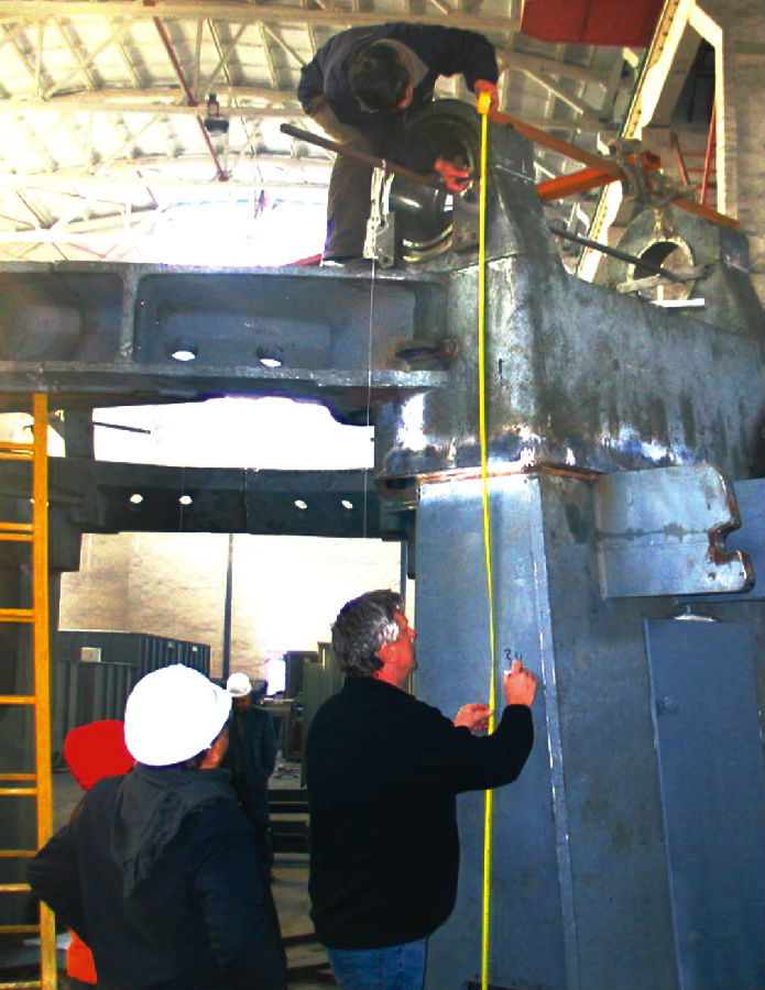 磨輥本體磨損立磨磨輥本體和耐磨襯板在使用過程中,由于受到輥?zhàn)幽雺毫?、物料支反力、物料與立磨磨輥襯板之間的摩擦阻力;由于物料碾入角而造成磨輥剪切應(yīng)力、輥磨的液壓系統(tǒng)壓力以及立磨的表觀壓應(yīng)力等力的相互綜合作用,這些力均作用于立磨磨輥有效碾壓區(qū)。一旦出現(xiàn)配合間隙,磨輥本體與襯板之間將會(huì)發(fā)生沖擊碰撞,使得本體與襯板之間磨損加劇,嚴(yán)重時(shí)使得襯板產(chǎn)生裂紋甚至斷裂,造成襯板脫落,機(jī)器損壞,特別是減速機(jī)的損壞,造成惡性事件。該類問題一旦發(fā)生,一般修復(fù)方法難以解決,拆卸、焊補(bǔ)、機(jī)加工費(fèi)時(shí)費(fèi)力,造成的停機(jī)停產(chǎn)時(shí)間大大延長,給企業(yè)帶來無可挽回的巨額經(jīng)濟(jì)損失。針對(duì)上述問題,歐美等發(fā)達(dá)國家多使用高分子復(fù)合材料進(jìn)行立磨機(jī)輥體磨損快速修復(fù),其中應(yīng)用較為成熟的有福世藍(lán)系列等。材料以其優(yōu)良的機(jī)械性能及良好的可塑性,使得該問題得以圓滿解決。不僅可延長設(shè)備使用壽命、提高生產(chǎn)率,并且在不占用額外的立磨機(jī)停機(jī)停產(chǎn)時(shí)間的同時(shí),簡單有效的避免該問題出現(xiàn)的二次可能性,給企業(yè)安全連續(xù)化生產(chǎn)保駕護(hù)航。