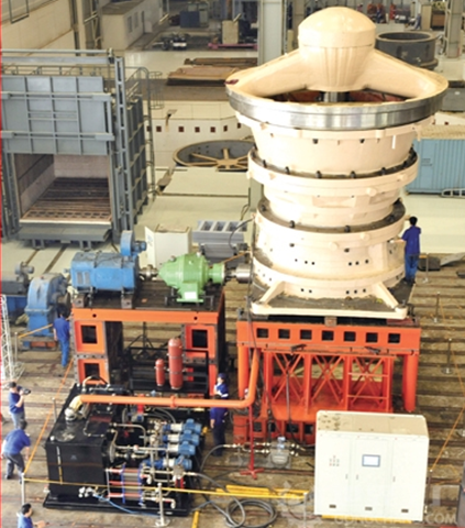 我公司生產(chǎn)的旋回破碎機(jī)均為液壓支承結(jié)構(gòu)。破碎機(jī)啟動前,首先打開油泵向缸內(nèi)充油,當(dāng)破碎圓錐上升到工作位置后,關(guān)閉截止閥,同時停止油泵。這種結(jié)構(gòu)的破碎機(jī)可方便地調(diào)整排礦口尺寸,使用戶獲得滿意的產(chǎn)品粒度和產(chǎn)量。當(dāng)非破碎物落入破碎腔時造成破碎力增加,系統(tǒng)油壓也隨之增高,油缸內(nèi)的油被壓入蓄能器中,從而使破碎圓錐下降,排礦口增大,排除非破碎物。非破碎物排出后,在蓄能器的作用下,油經(jīng)單向節(jié)流閥比較緩慢地壓入油缸中,從而使破碎圓錐很平穩(wěn)地自動復(fù)位。當(dāng)非破碎物尺寸過大不能通過排礦口排出時,系統(tǒng)油壓繼續(xù)升高達(dá)電接點(diǎn)壓力表調(diào)定值時,控制系統(tǒng)可自動停止主電機(jī),以保證設(shè)備安全。